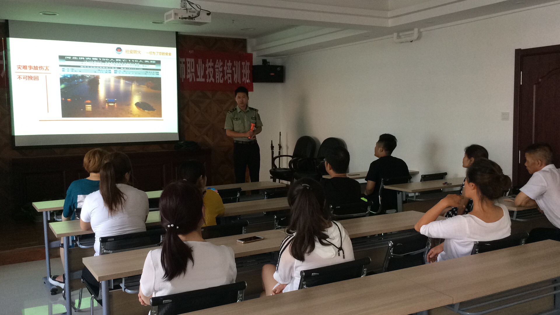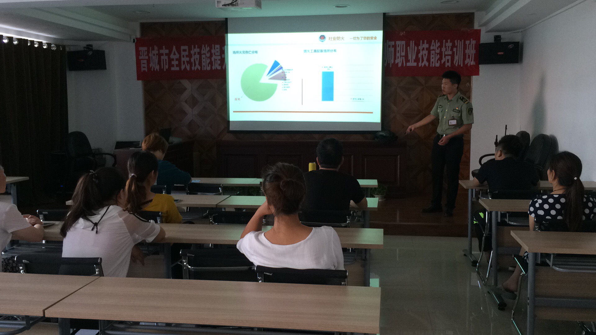 1、課堂上,教官通過強(qiáng)烈震撼的火災(zāi)圖片和視頻以及生動的案例,讓員工詳細(xì)了解了火災(zāi)的危害。