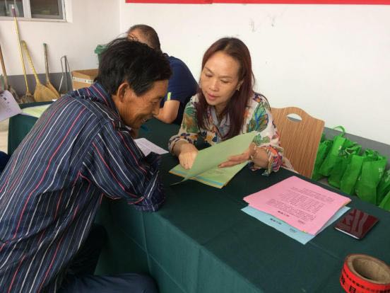 志愿者為農(nóng)村剩余勞動(dòng)力介紹潔霸公司招工簡章 村民們認(rèn)真閱讀招工簡章。