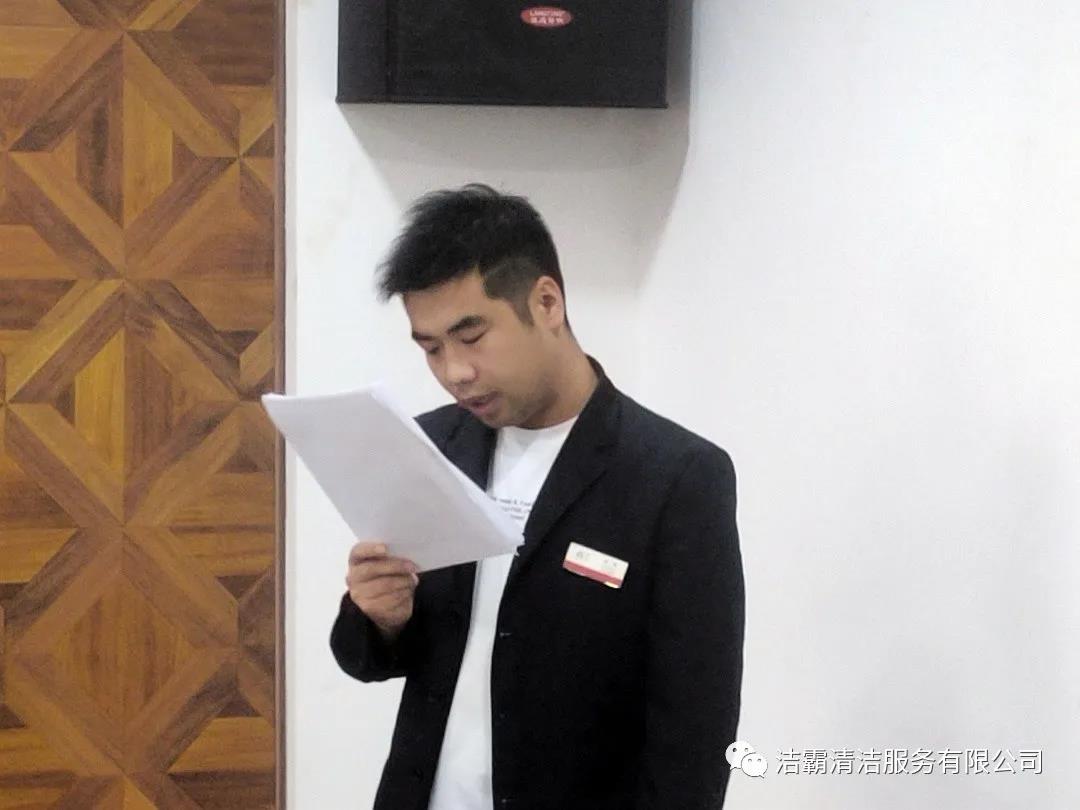 山西潔霸物業(yè)管理有限公司經(jīng)理李廣忠、會(huì)計(jì)張青霞、出納王頓花、晉城市合眾力勞務(wù)派遣有限公司經(jīng)理成濤、出納劉雨星、晉城市潔霸清潔服務(wù)股份有限公司工程部文員張陽(yáng)楠、綜合辦公室車輛管理員呂衛(wèi)東、人力資源部文員呂利清、山西百潔物業(yè)服務(wù)有限公司出納王笑依次上臺(tái)作了述職匯報(bào)。