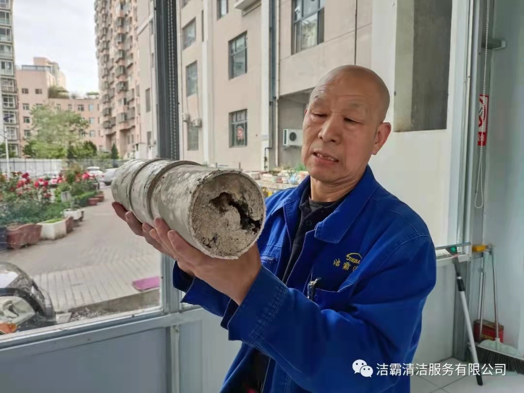 A單元的污水主管道堵塞,是因修建時的不合理性。這十多年來垃圾一點一點累積,污物像惡性腫瘤一樣,密密實實的塞在污水主管道底層部分有十幾米。用潔霸公司程晉軍總經(jīng)理生動形象的比喻。這種堵塞病癥是管道得了“食道癌”,這種病癥只能大動手術(shù)才能治療。