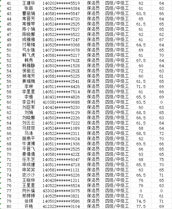 晉城市潔霸清潔服務股份有限公司職業(yè)技能等級認定中心現(xiàn)將2024年2月25日認定人員成績公示如下: