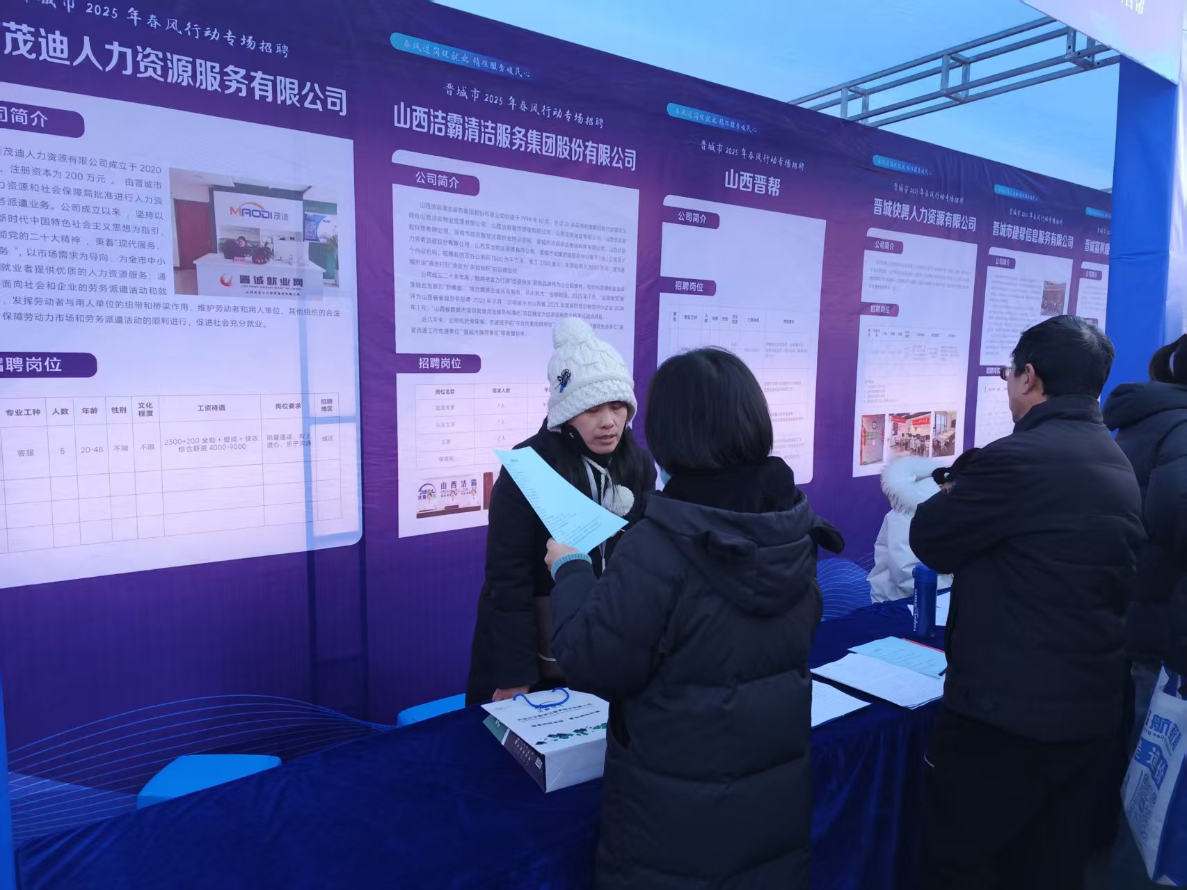 2月9日,“春風(fēng)送崗促就業(yè) 精準(zhǔn)服務(wù)暖民心”晉城市2025年春風(fēng)行動(dòng)專場(chǎng)招聘活動(dòng)在陽(yáng)電體育場(chǎng)舉行。我公司人力資源部參加活動(dòng)。