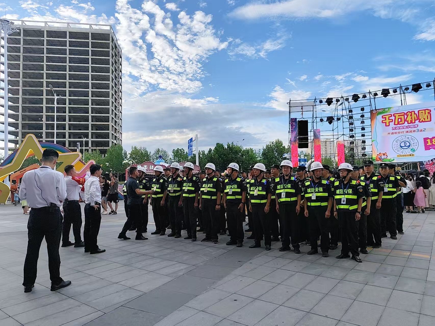 活動(dòng)期間,城區(qū)保安人員按照既定方案,每天晚上6點(diǎn)到崗到位,配合公安、消防等部門做好秩序維護(hù)、交通疏導(dǎo)及服務(wù)保障等工作。出入口崗位的保安負(fù)責(zé)引導(dǎo)群眾有序進(jìn)出,舞臺(tái)周邊的保安重點(diǎn)維護(hù)觀眾秩序,防止擁擠、踩踏等危險(xiǎn)情況發(fā)生。盡管每天晚上工作時(shí)間長達(dá)6小時(shí),他們時(shí)刻保持警惕,沒有絲毫放松。現(xiàn)場(chǎng)人流量一度突破萬人次,但執(zhí)勤保安始終用規(guī)范的動(dòng)作、耐心的態(tài)度引導(dǎo)人流,以嚴(yán)謹(jǐn)?shù)墓ぷ髯黠L(fēng)和飽滿的精神狀態(tài)為活動(dòng)保駕護(hù)航。